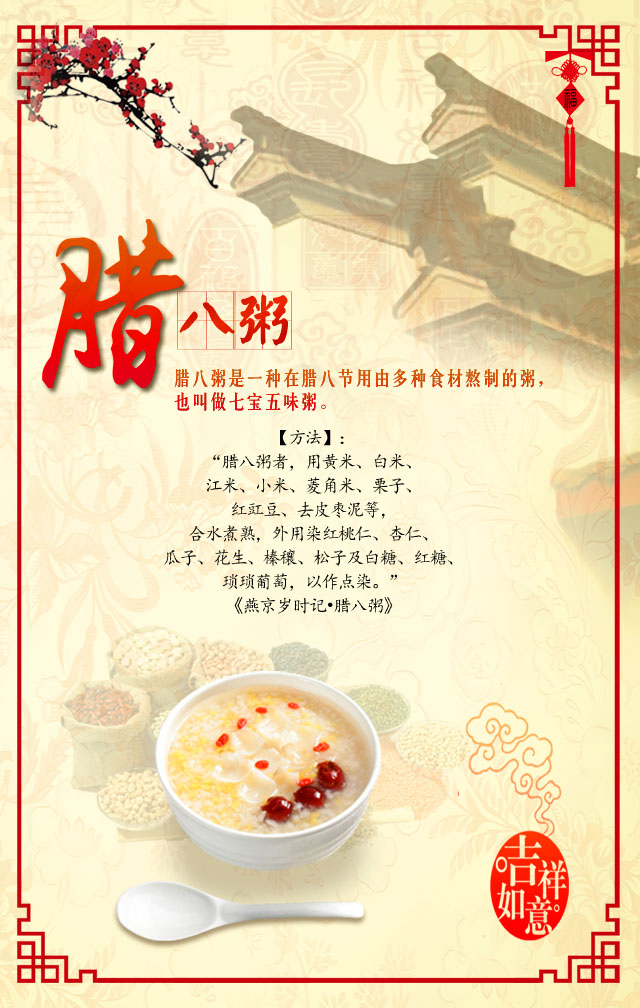 臘八節,俗稱“臘八” ,即農(nóng)曆十二月(yuè)初八,古人(rén)有(yǒu)祭祀祖先和(hé)神靈、祈求豐收吉祥的(de)傳統,一(yī)些(x•iē)地(dì)區(qū)有(yǒu)喝(hē)臘八粥的(de)習(xí)俗。相(xiàng)傳這(zhè)一(yī)天還(hái)是↑(shì)佛祖釋迦牟尼成道(dào)之日(rì),稱為(wèi)“法寶節”,是(shì)佛教盛大(dà)的(de)節日(rì)之一(yī)。
