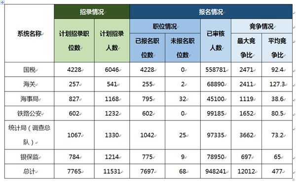 (注:職位競争比為(wèi)已審核人(rén)數(shù)/計(jì)劃招錄人(rén)數(shù))
