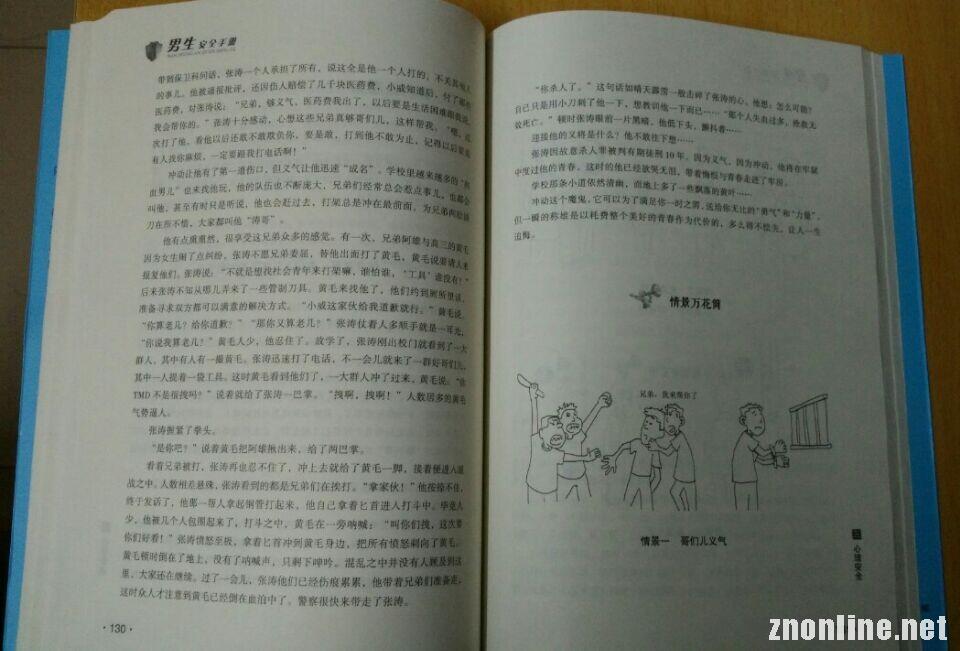 《男(nán)生(shēng)安全手冊》分(fēn)發給武昌理(lǐ)工(gō✔ng)學院男(nán)生(shēng)後,引發熱(rè)議(yì),大(dà)家(jiā)在感到(dào)好(hǎo)奇的(de)同時(shí),也(yě)稱贊有(yǒu)加。來(lái)自(zì)↓該校(xiào)生(shēng)命科(kē)學學院生(shēng)物(wù)工(gōng)程1301班的(de)趙曉雪(xuě)說(shuō):“我覺得(de)這(zhè)本書(shū)彌補了(l∑e)人(rén)們在傳統意義上(shàng)對(duì)男(nán)生(shēng)各方面關愛(ài)的(de)空(kōng)白(bái)。其實不(bù)管從(cóng)那(nà)個(gè)角度上≤(shàng)來(lái)看(kàn),男(nán)生(shēng)跟女(nǚ)生(shēng)一(yī)樣都(dōu)需要(yào)關愛(ài)。《男(nán)生(s←hēng)安全手冊》面面俱到(dào)地(dì)在男(nán)生(shēng)的(de)生(shēng)理↕(lǐ)、心理(lǐ)等方面對(duì)男(nán)生(shēng)進行(xíng)正确的(de)指導,在書(shū)中跟《女(nǚ)₩生(shēng)安全手冊》一(yī)樣采用(yòng)情景回顧的(de)方式讓人(rén)覺得(de)有(yǒu<)親切感。認真閱讀(dú)此書(shū)肯定能(néng)幫助男(nán)生(shēng)樹(shù)立正确的(de)‘三觀&rsq"uo;,這(zhè)是(shì)一(yī)本不(bù)可(kě)多(duō)得(de)的(de)好(hǎo)書(shū) 。”