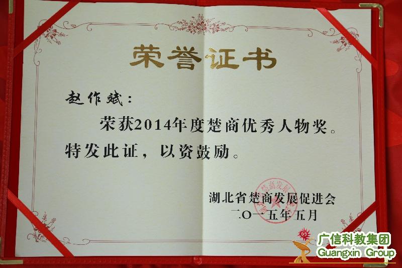 趙作(zuò)斌總裁榮獲2014年(nián)度楚商優秀人(rén)物(wù)