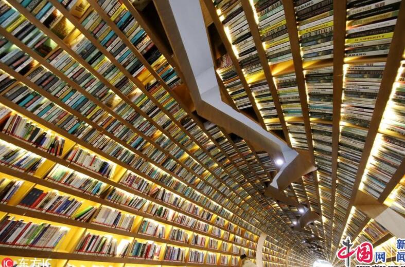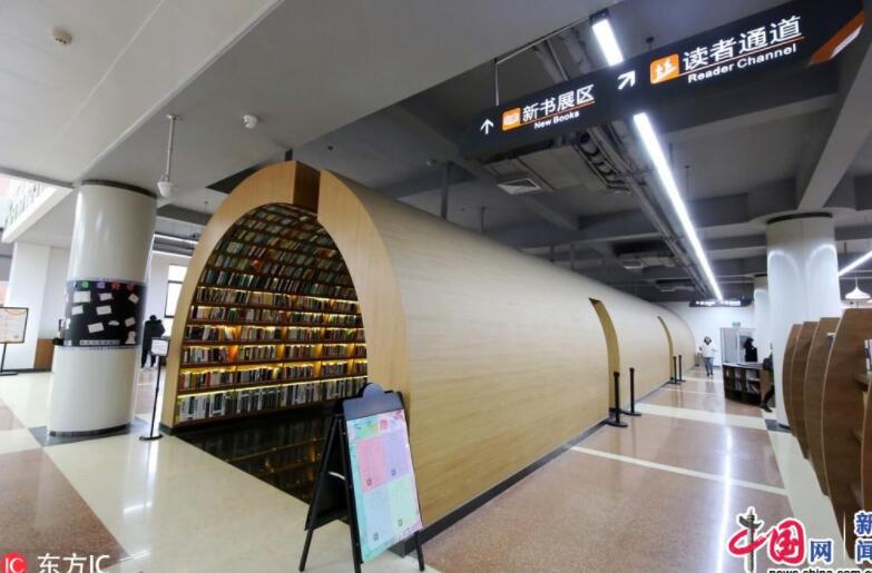 高(gāo)校(xiào)現(xiàn)“書(shū)海(hǎi)隧道(dào)” 頭頂身(shēn)側全是(shì)書(shū)