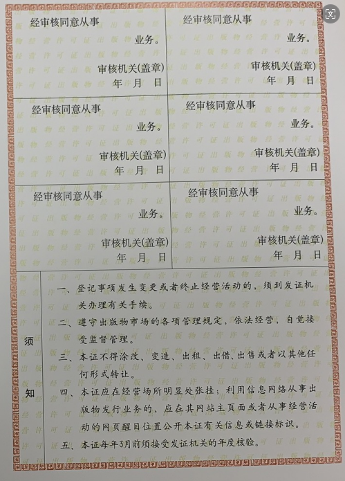 通(tōng)知(zhī)顯示,本次核驗工(gōng)作(zuò)将核查發行(xíng)單位2023年(nián)1月(yuè)1日(rì)至2023年(nián)12月(yuè)31日(rì)期間$(jiān)是(shì)否有(yǒu)違反國(guó)家(jiā)法律、法規及相(xiàng)關部門(mén)規章(zhāng)的(de)行(xíng)為(wèi),有(y☆ǒu)無被處罰記錄;是(shì)否仍具備從(cóng)事(shì)出版物(wù)發行(xíng)業(yè)務的(de)基本條件(jiàn);核查通(tōng)過互聯網等信息網絡從(cóng)事(shì)出版↑物(wù)發行(xíng)業(yè)務的(de)發行(xíng)單位是(shì)否履行(xíng)備案手續,出版物(wù)經營許£可(kě)證是(shì)否加注“網絡發行(xíng)”字樣,網站(zhàn)主頁₹面或者從(cóng)事(shì)經營活動網頁醒目位置是(shì)否公開(kāi)出版物(wù)經營許可(kě)證和(h±é)營業(yè)執照(zhào)登載的(de)有(yǒu)關信息或者鏈接标識。